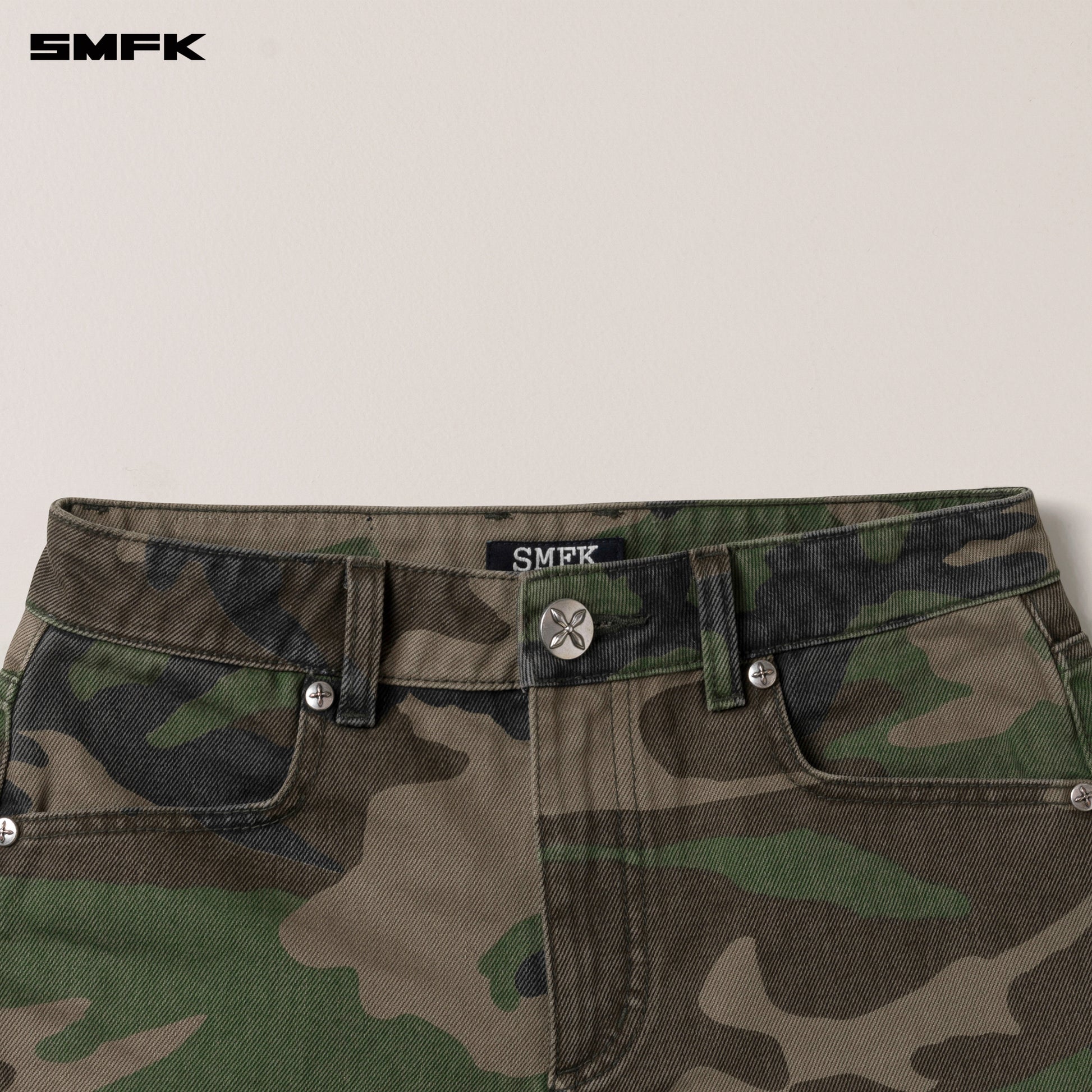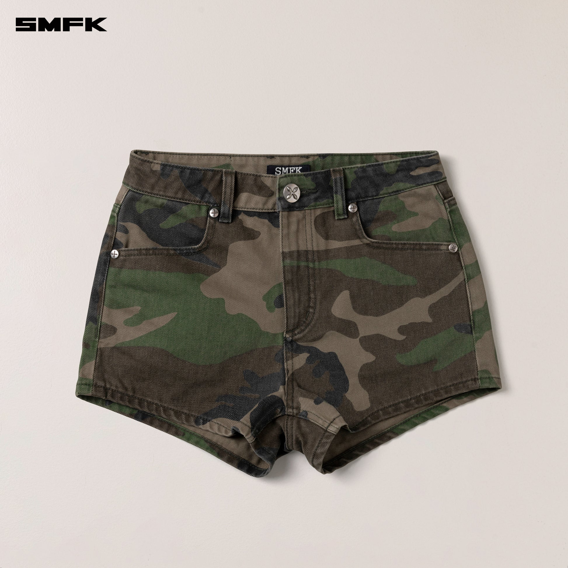 COMPASS DANCER Denim Flat Shorts Army Green Camouflage