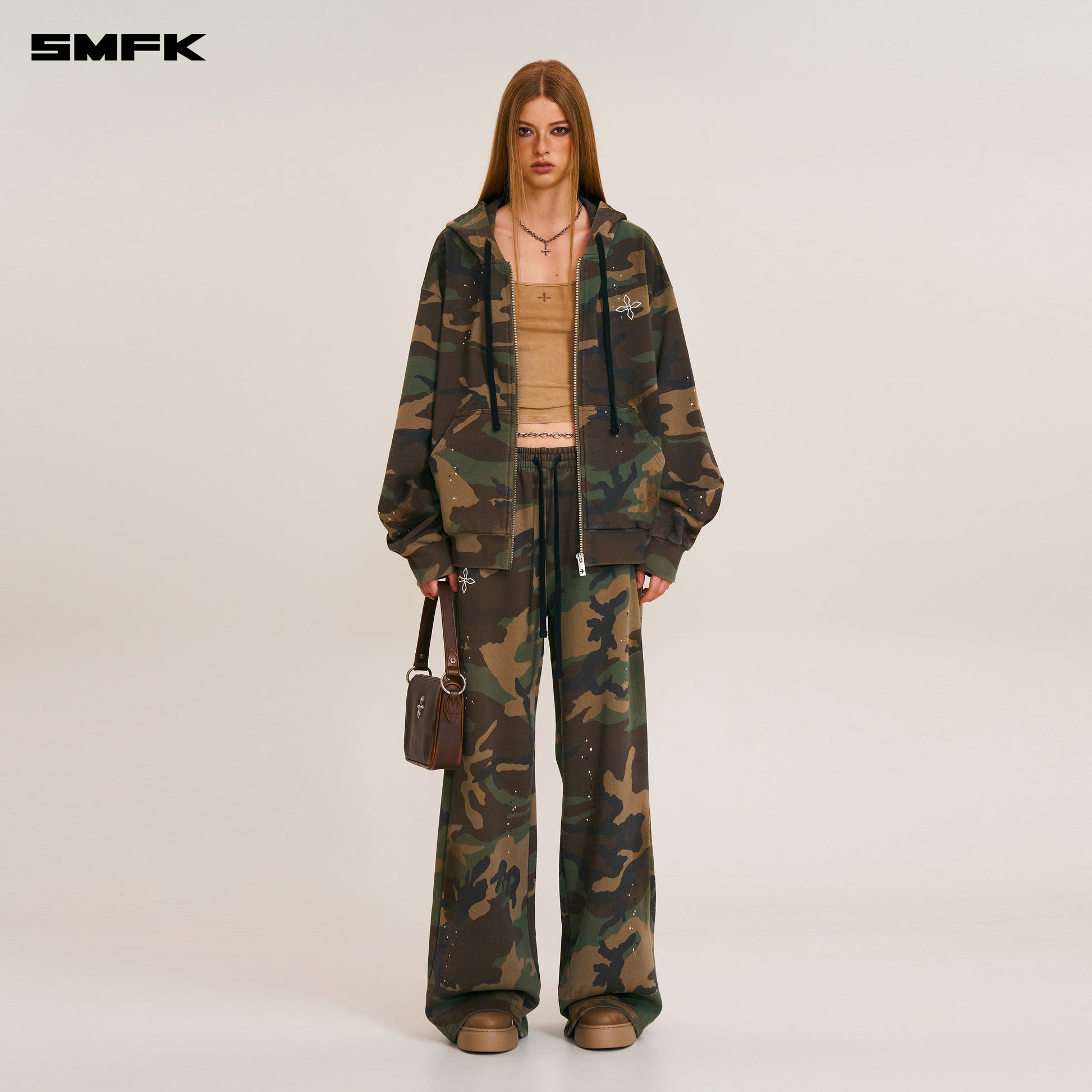 COMPASS MODE CAMO LOOSE ZIP HOODIE Army Green Camouflage